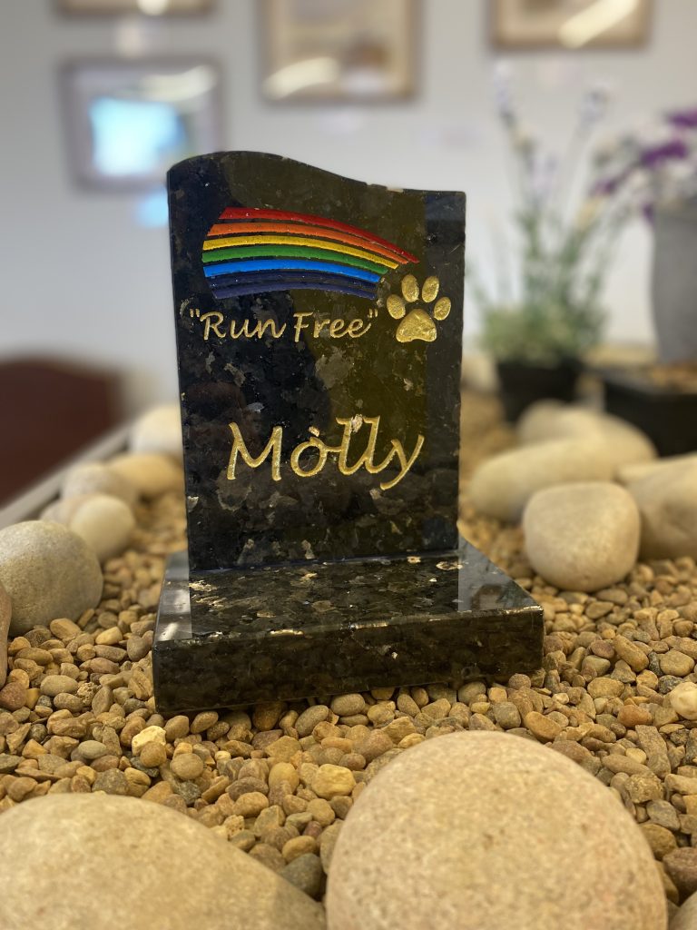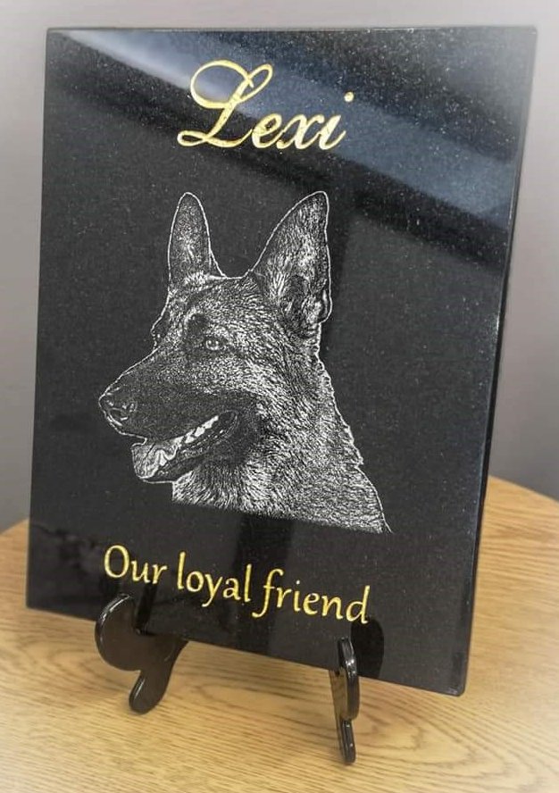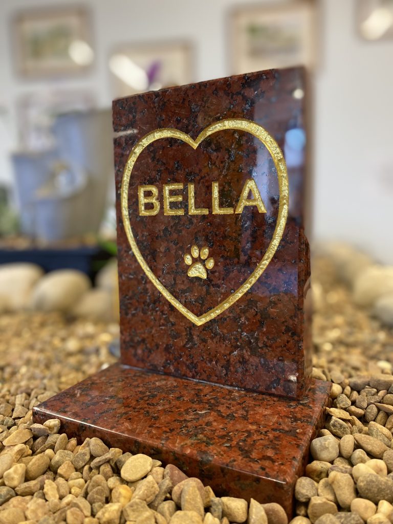 Our keepsakes are polished black granite and can be displayed within the home or laid in a special place in the garden to remember that special someone.